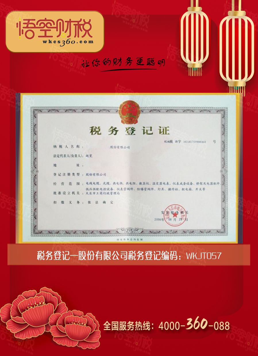 欢迎到悟空财税办理股份有限公司税务登记业务!