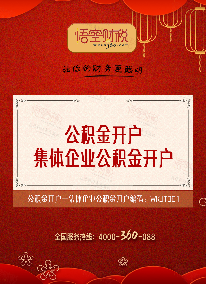 欢迎到悟空财税办理集体企业公积金开户业务!