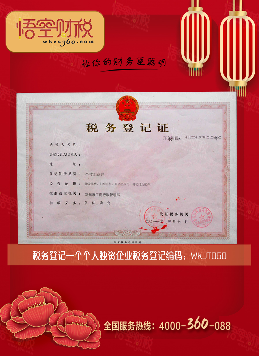欢迎到悟空财税办理个人独资企业税务登记业务!