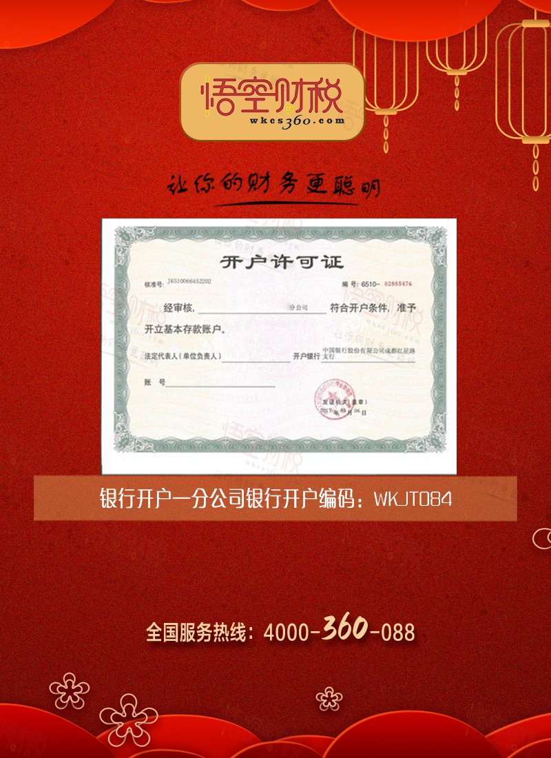 欢迎到悟空财税办理分公司银行开户业务!