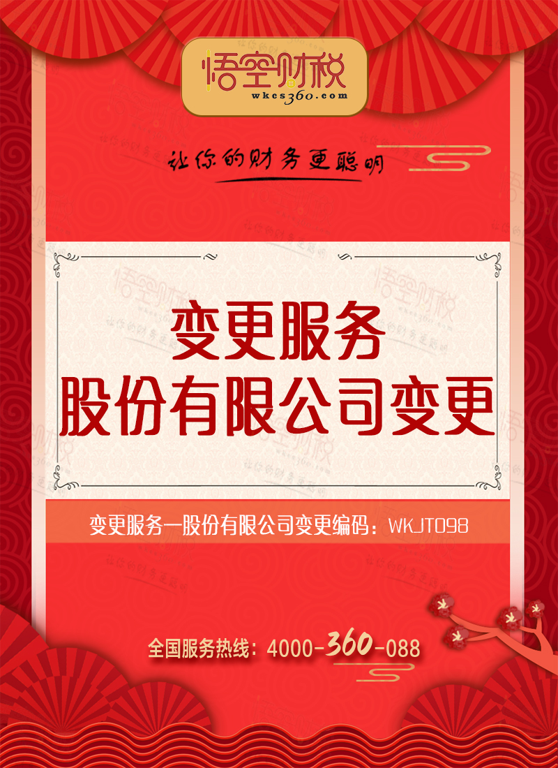欢迎到悟空财税办理股份有限公司变更业务!