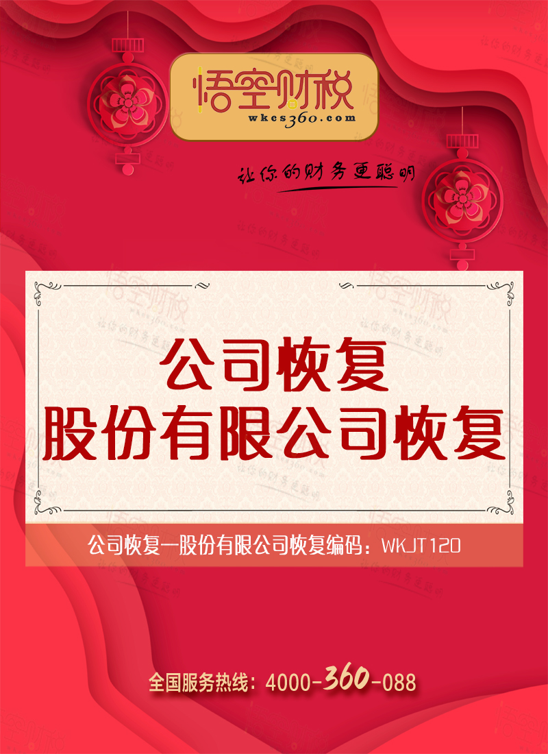 欢迎到悟空财税办理股份有限公司恢复业务!
