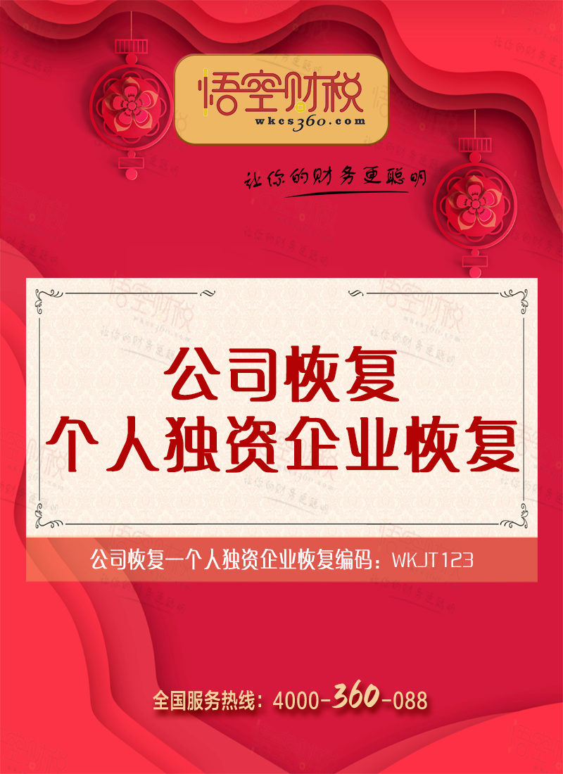 欢迎到悟空财税办理个人独资企业恢复业务!