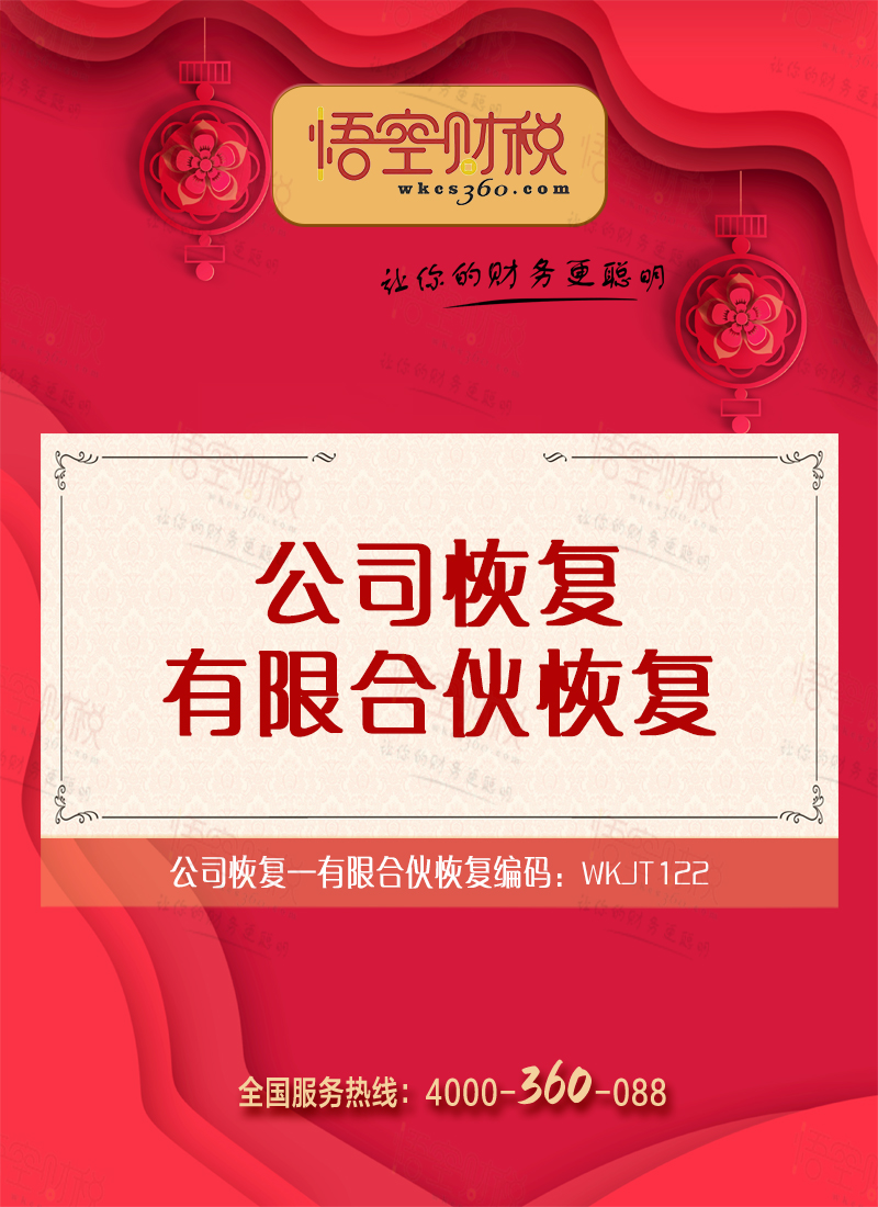欢迎到悟空财税办理股份有限合伙恢复业务!
