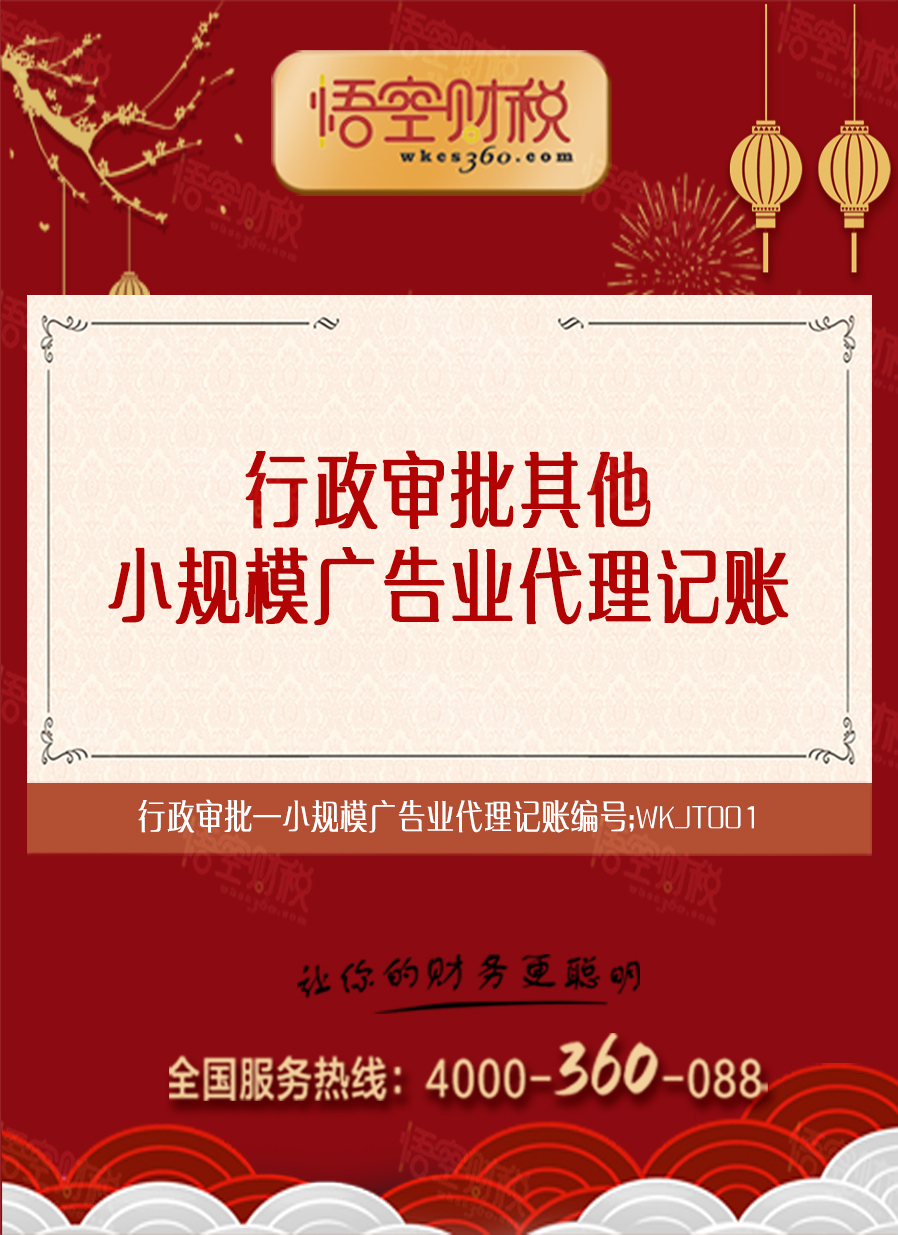 欢迎来悟空财税办理小规模广告业代理记账业务!