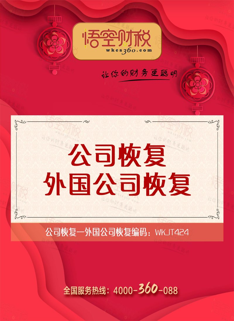 欢迎到悟空财税办理外国公司恢复业务!