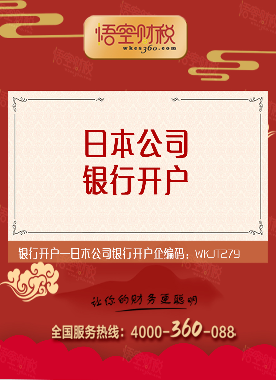 欢迎到悟空财税办理日本公司银行开户业务!